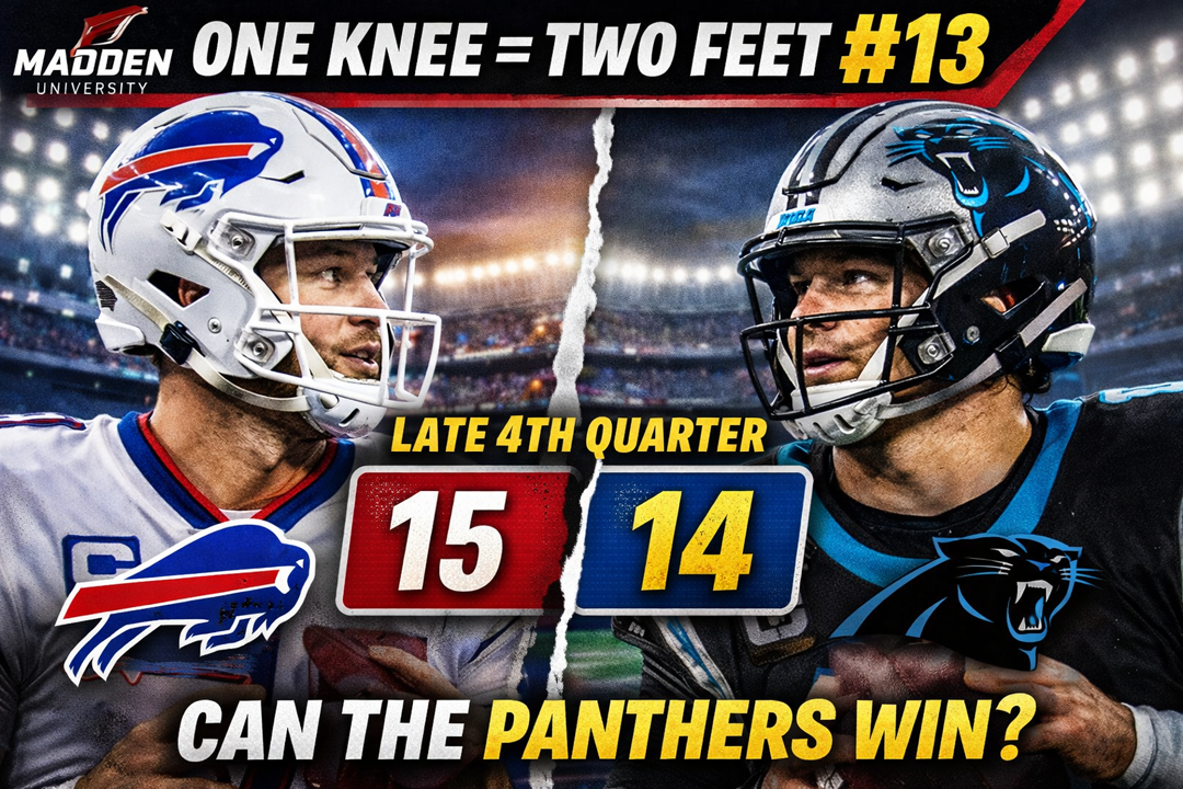In One Knee = Two Feet #13, the Carolina Panthers find themselves in an early chess match when the Bills gamble on a two-point conversion right out of the gate. TNT713 breaks down the philosophy behind chasing points early… and questions whether Buffalo will even see the end zone again.